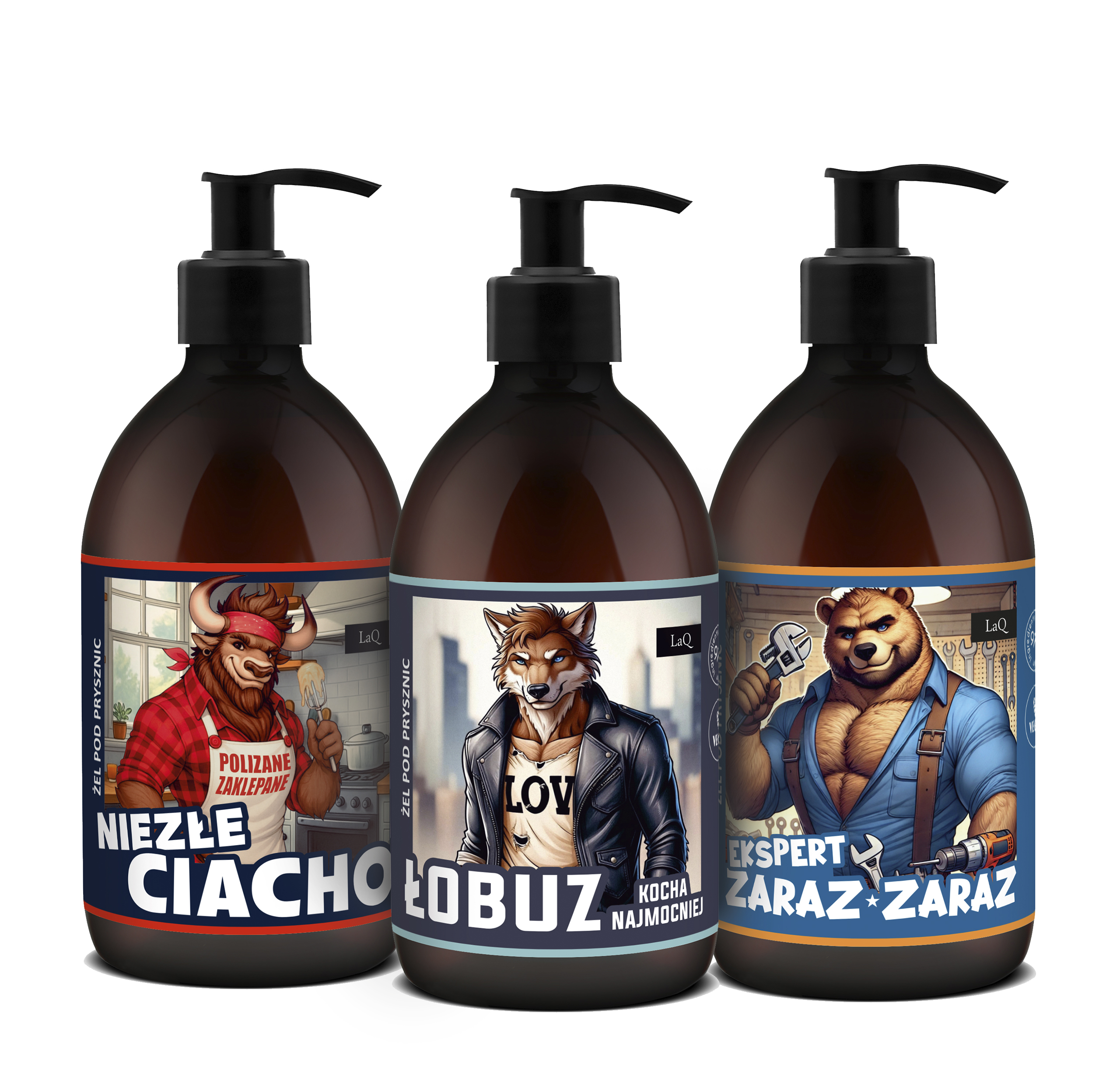 🐻 Żel pod prysznic EKSPERT ZARAZ ZARAZ 500 ml – Jestem niepozorny i delikatny, ale skuteczny jak diabli. Znajdziesz u mnie łagodne substancje myjące oraz kilka dobrych składników, pożądanych jak komplet porządnych kluczy w warsztacie. Gliceryna pochodzenia roślinnego zapobiega uczuciu przesuszenia po myciu i żeby pozostawić jeszcze lepszy efekt, mam dla ciebie zestaw pre- i postbiotyków, korzystnie wpływających na skórę. Zapach perfum gratis. Ten żel zrobi z tobą to, co cola z rdzą i może rdzy nie usunie, tam gdzie zardzewiałeś, ale fuszerki na pewno nie odstawi.