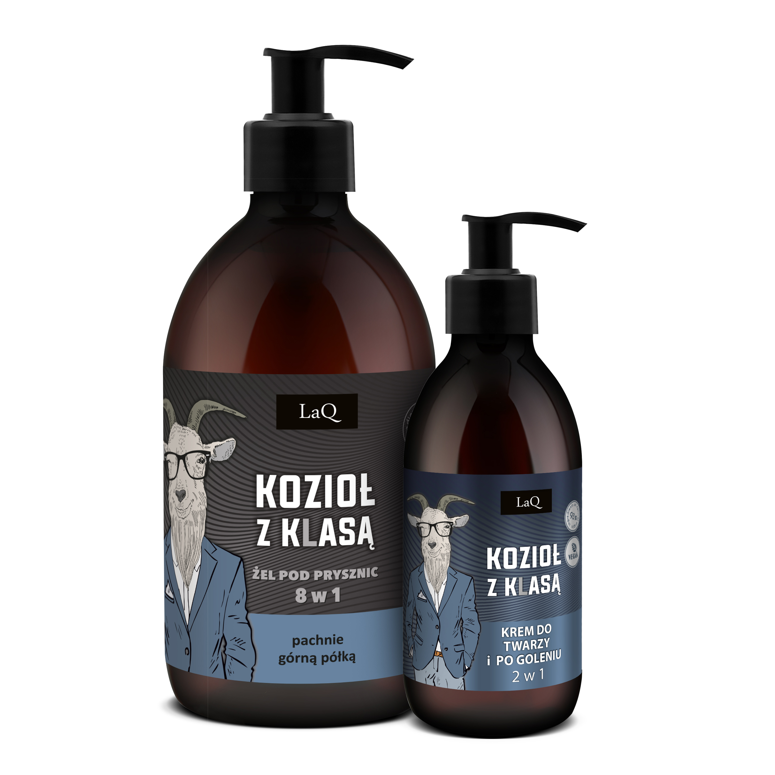 Zestaw męski do pielęgnacji Myj i Klep KOZIOŁ Z KLASĄ – Żel pod prysznic + Krem do twarzy i po goleniu LaQ