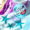 Here I am, a handmade fizzy bath bomb for kids, in a vibrant blue colour to boot. What’s more, me and my twin colorful sisters (orange and pink) have little surprise soaps hidden inside us. So try us all and collect the entire collection!