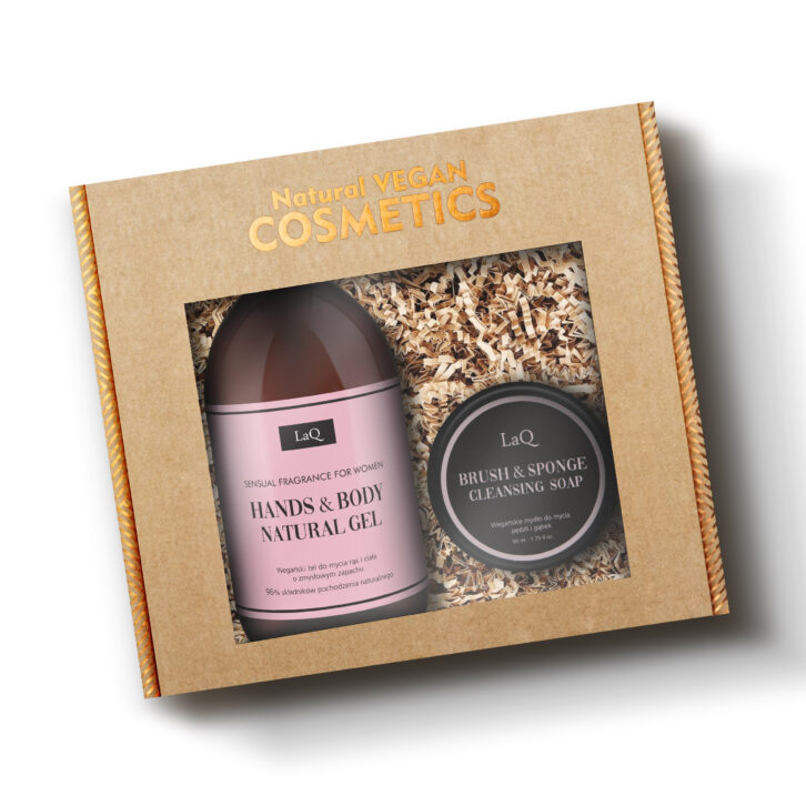Oto ja, zestaw damskich kosmetyków wegańskich Czysty Pędzel, w którym znajdziesz żel do mycia ciała i rąk oraz mydło do mycia pędzli z serii Sensual. Linia ta niesamowicie pobudza zmysły i wyobraźnię, a została stworzona dla kobiet subtelnych i delikatnych, naturalnie eleganckich i kusząco powabnych. Receptura żelu do mycia ciała i rąk opiera się na delikatnych substancjach myjących, zawiera również ekstrakty roślinne, pantenol, postbiotyk, mocznik oraz niacynamid. Z kolei mydło, zamknięte w praktycznym słoiczku, jest ekspertem w myciu gąbek kosmetycznych i pędzli z naturalnego, jak i syntetycznego włosia. Oba produkty pachną delikatnie i niezwykle zmysłowo – rozpoznasz w nich nuty owocowe i kwiatowe.