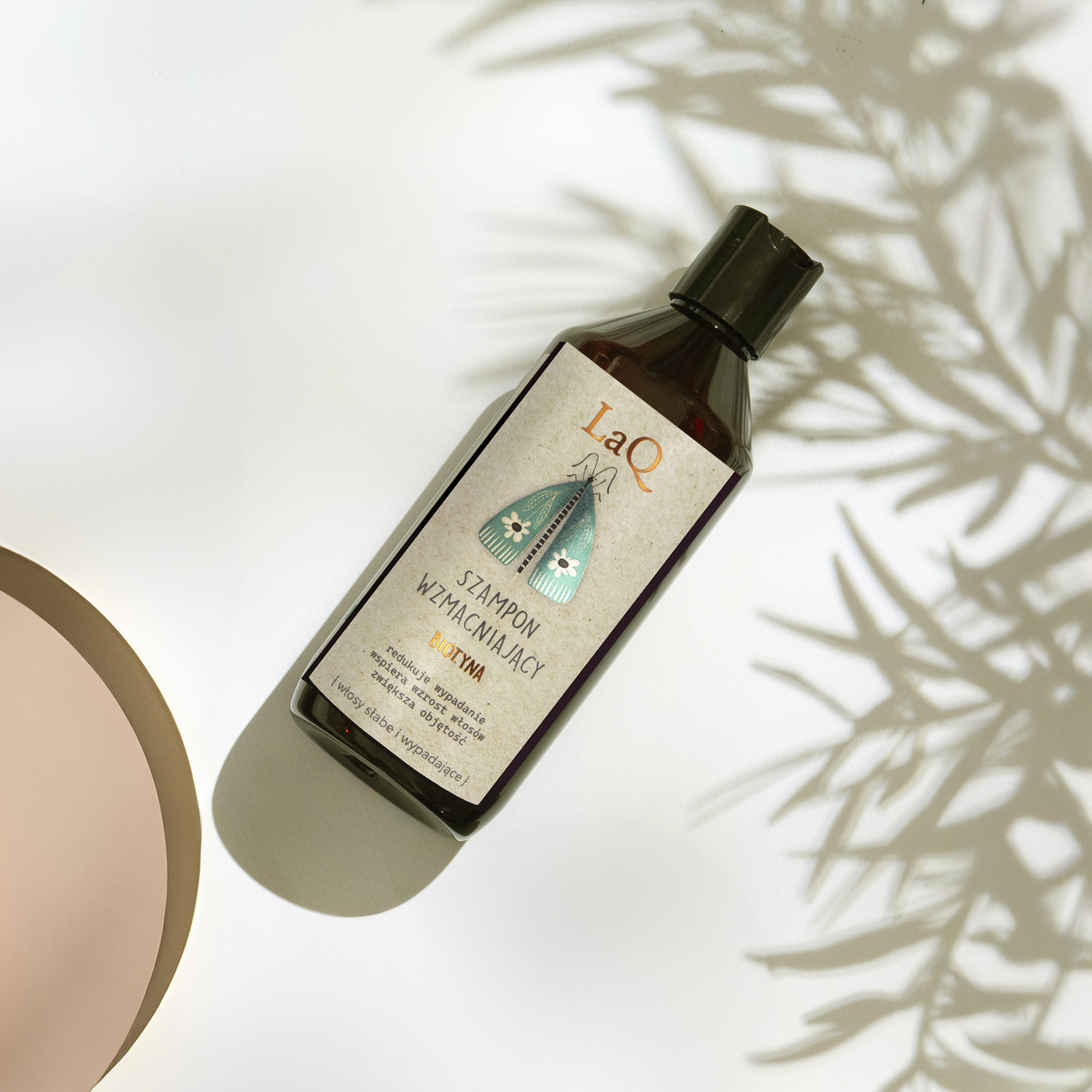 Poznaj naturalny szampon wzmacniający z biotyną, pielęgnujący włosy słabe i wypadające. Jego receptura bazuje na łagodnych substancjach myjących pochodzenia roślinnego, a pH jest neutralne dla Twojej skóry.