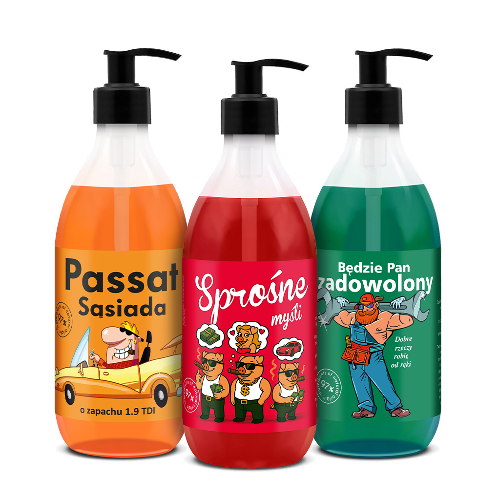Co jest lepsze na prezent niż pół litra? Półtora litra! Szukasz prezentu dla faceta na urodziny? A może interesuje Cię pomysł na niebanalny prezent dla kumpla na imieniny? Upominek na Dzień Chłopaka, podarunek na święta? Jesteś we właściwym miejscu, bowiem na prezent dla mężczyzny nadaję się idealnie! W szczególności dlatego, że jestem zapakowany w efektowne pudełko prezentowe z okienkami i wygodnym uchwytem. Poza tym, z uwagi na różnorodność zapachową i zabawne etykiety mogę śmiało zapewnić Cię, że szaleństwo zmysłów i zadowolenie obdarowanego masz murowane!