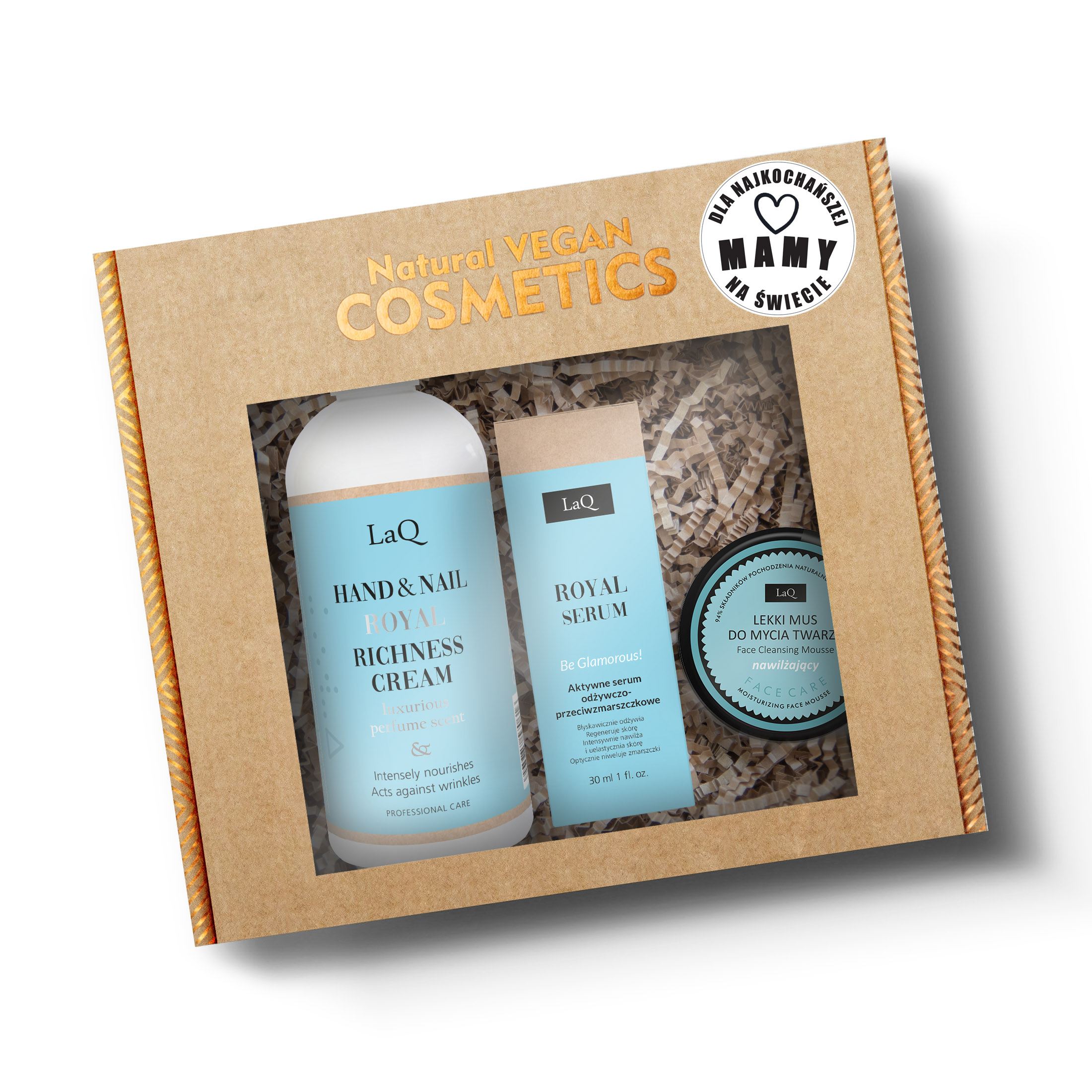 LaQ Zestaw Prezentowy dla Mamy: Krem do rąk, Serum Royal i Mus do mycia twarzy + NAKLEJKA