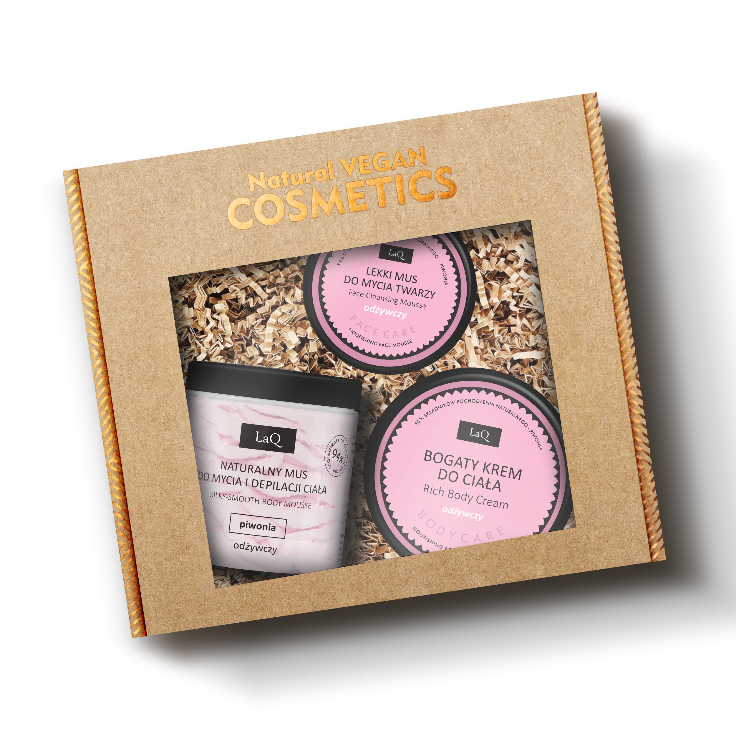Oto ja, czyli wegański zestaw kosmetyków naturalnych dla kobiety, składający się z musu do mycia twarzy, musu do ciała oraz kremu do ciała. Ta kultowa już seria pachnie ekskluzywnie i zmysłowo – rozpoznasz w niej uwodzicielską piwonię. Powstała ona dla kobiet silnych i zdecydowanych, które znają swoją wartość i potrafią wykorzystać swoje atuty. Mus do mycia twarzy o konsystencji lekkiej jak chmurka pianki świetnie oczyszcza twarz, jednakże nie zaburza jej naturalnego pH. Natomiast niezwykle lekki mus do ciała łączy w sobie właściwości żelu do mycia i pianki do golenia. Dodatkowo możesz nim również umyć włosy, zatem w razie potrzeby z powodzeniem zastąpi Twój szampon! Z kolei bogaty krem do pielęgnacji ciała wykazuje działanie odżywcze, a dodatkowo niezwykle przyjemnie rozprowadza się na skórze i szybko się wchłania. Sensualny zapach wszystkich tych kosmetyków sprawi, że Twoje zmysły oszaleją z zachwytu, a Ty oczywiście razem z nimi!