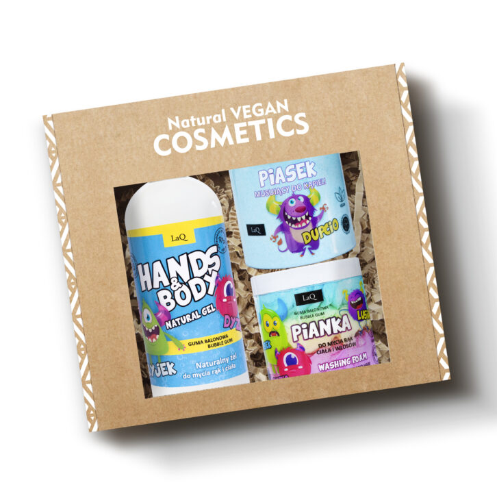 Oto ja, czyli wegański zestaw kosmetyków naturalnych dla dziecka, składający się z żelu do mycia, 3-kolorowej pianki do mycia oraz musującego piasku do kąpieli. Seria ta ma odlotowy zapach gumy balonowej oraz marakui. Stworzyliśmy ją specjalnie dla dzieci, z myślą o ich delikatnej skórze i miłości do kolorów. Żel przeznaczony jest do mycia ciała, włosów i rąk. Jego receptura bazuje na łagodnych substancjach myjących, zawiera również kompleks składników nawilżająco-odżywczych. Natomiast w niebiańsko lekkiej 3-kolorowej piance do kąpieli znajdziesz m.in. nawilżający ekstrakt z ryżu, masło shea i olej ze słodkich migdałów. Ponadto pianka barwi wodę na piękne kolory! Z kolei musujący piasek do kąpieli ma żywy niebieski kolor, który sprawia, że wanna zamienia się w morze. A skoro morze, to musi być piasek! Z tymi produktami każdą kąpiel zamienisz w relaksującą i pachnącą zabawę!