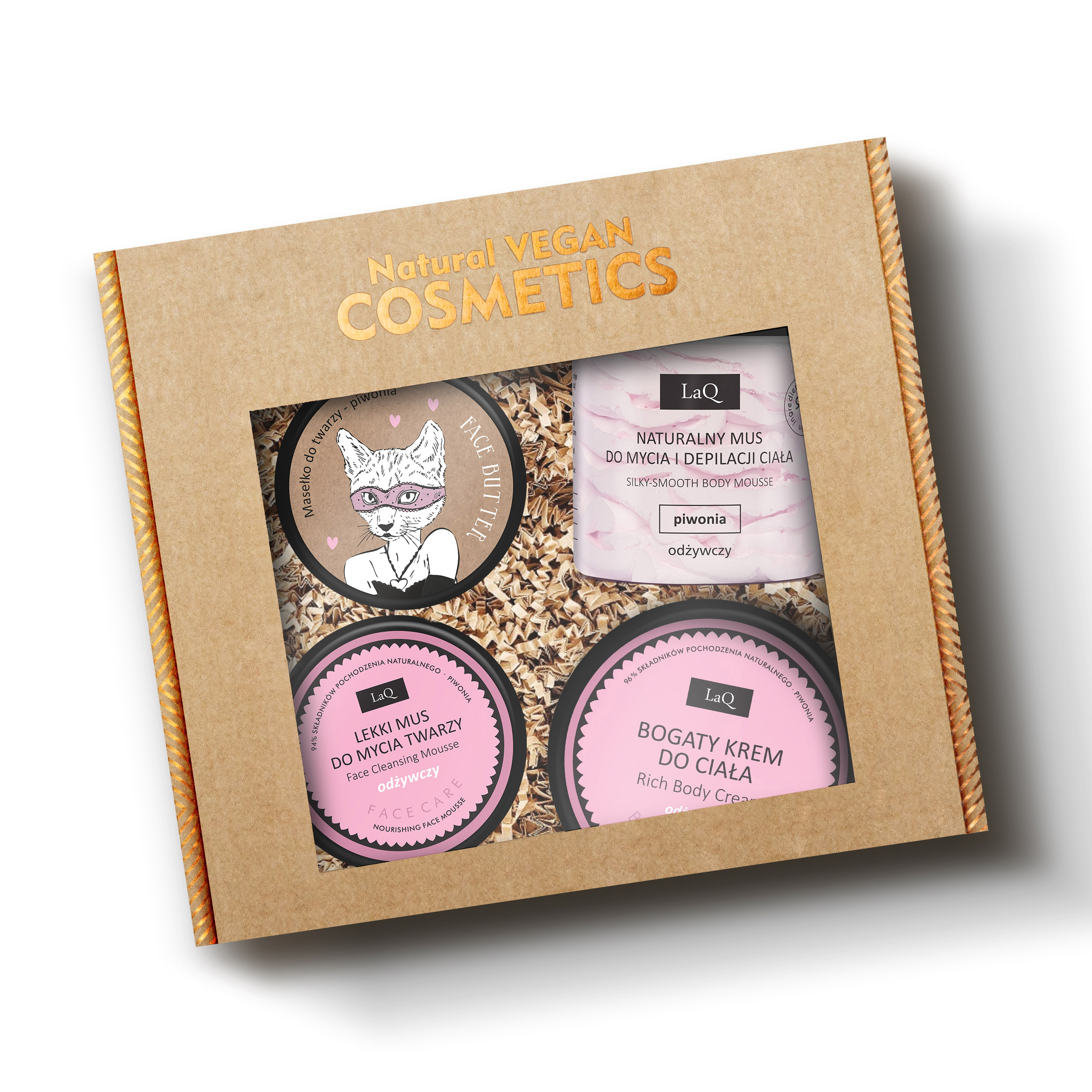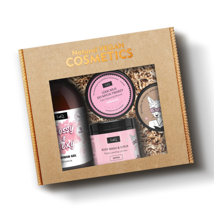 Oto ja, czyli wegański zestaw kosmetyków naturalnych dla kobiety, składający się z żelu pod prysznic, cukrowego peelingu myjącego, musu do mycia twarzy oraz masełka do twarzy. Ta kultowa już seria pachnie ekskluzywnie i zmysłowo – rozpoznasz w niej uwodzicielską piwonię. Powstała ona dla kobiet silnych i zdecydowanych, które znają swoją wartość i potrafią wykorzystać swoje atuty. Receptura żelu oparta jest na łagodnych substancjach myjących. Zawiera on też mnóstwo wspaniałych roślinnych ekstraktów oraz unikalny kompleks składników nawilżających. Cukrowy peeling myjący natomiast delikatnie oczyszcza skórę i usuwa z niej martwy naskórek. Mus do mycia twarzy o konsystencji lekkiej jak chmurka pianki świetnie oczyszcza twarz, jednakże nie zaburza jej naturalnego pH. Z kolei wielozadaniowe masło do twarzy o niezwykle odżywczej formule kryje w sobie bogactwo regenerujących składników, między innymi masło shea i witaminę E. Sensualny zapach wszystkich tych kosmetyków sprawi, że Twoje zmysły oszaleją z zachwytu, a Ty oczywiście razem z nimi!